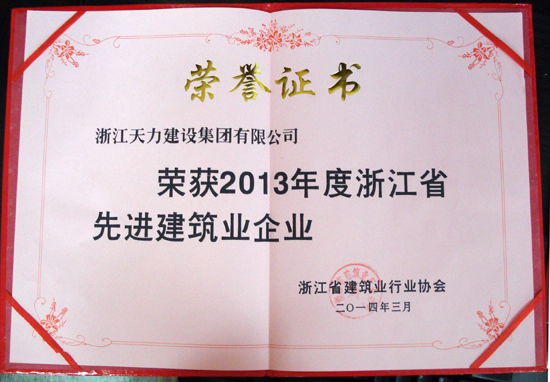 2013年度浙江省先進建筑業(yè)企業(yè)