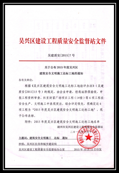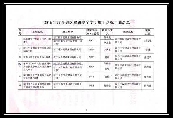 2015年度吳興區(qū)建筑安全文明施工達標工地-年產(chǎn)5000噸大型設備用耐腐蝕換熱管束技術開發(fā)及產(chǎn)業(yè)化項目