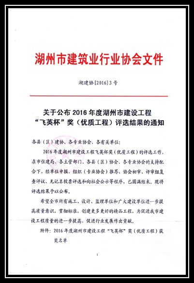 2016年度湖州市建設(shè)工程“飛英杯”獎(jiǎng)(優(yōu)質(zhì)工程)評(píng)選結(jié)果