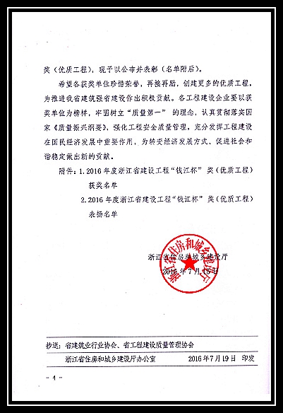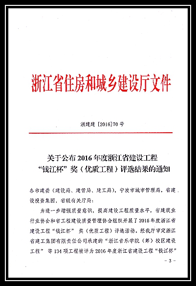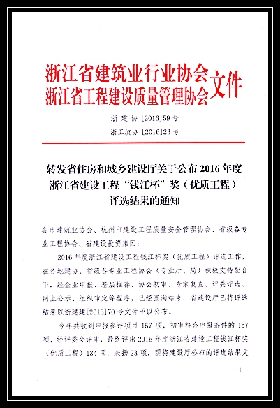 2016年度浙江省建設(shè)工程錢(qián)江杯獎(jiǎng)
