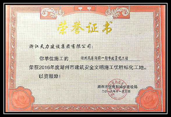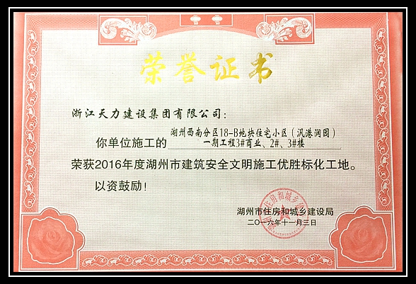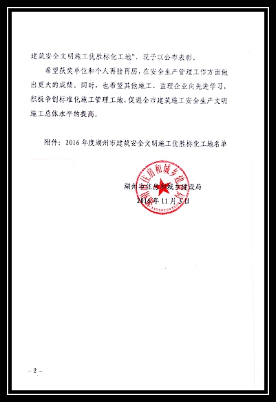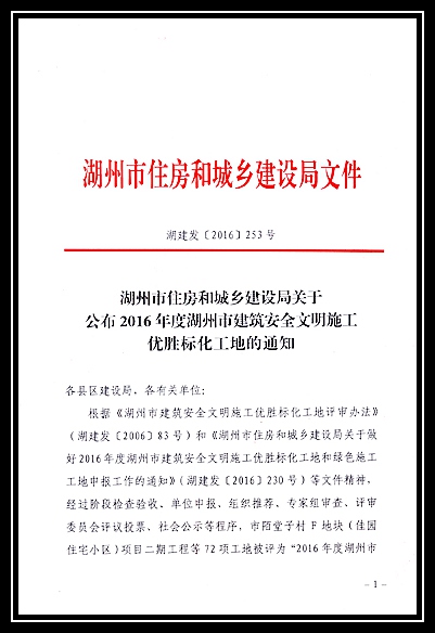 2016年度湖州市建筑安全文明施工優勝標化工地