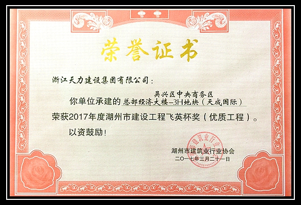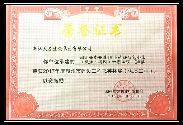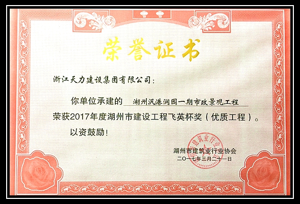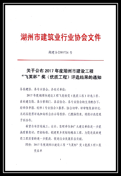 2017年度湖州市建設(shè)工程“飛英杯”獎(jiǎng)優(yōu)質(zhì)工程