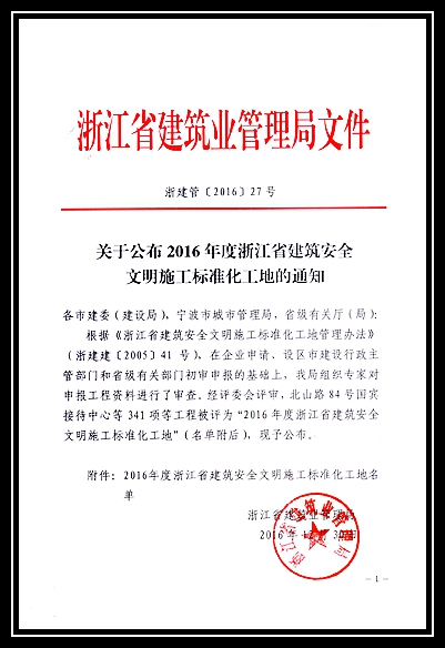 2016年度浙江省建筑安全文明施工標準化工地