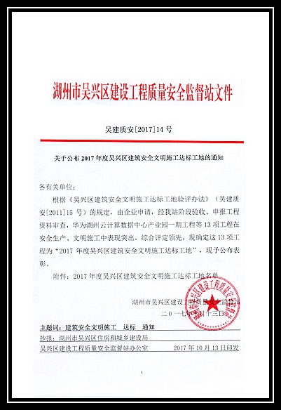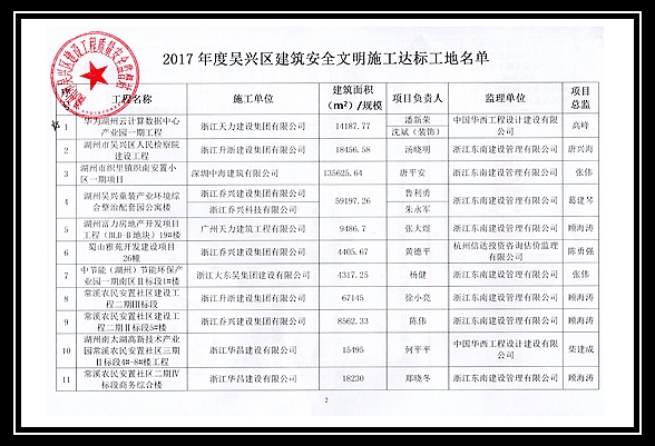 2017年度吳興區(qū)建筑安全文明施工達標工地