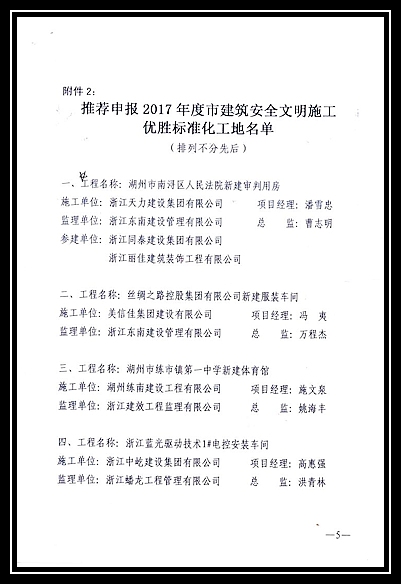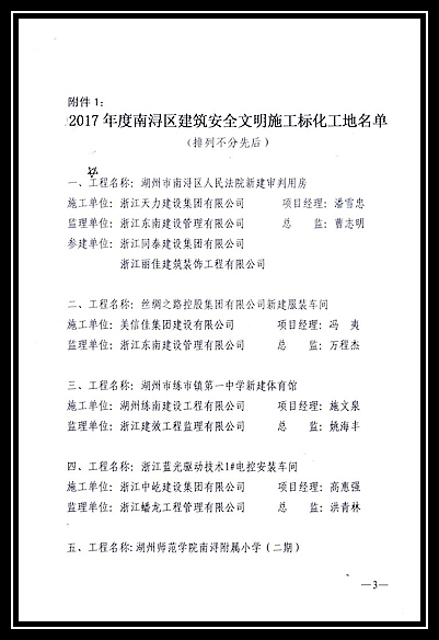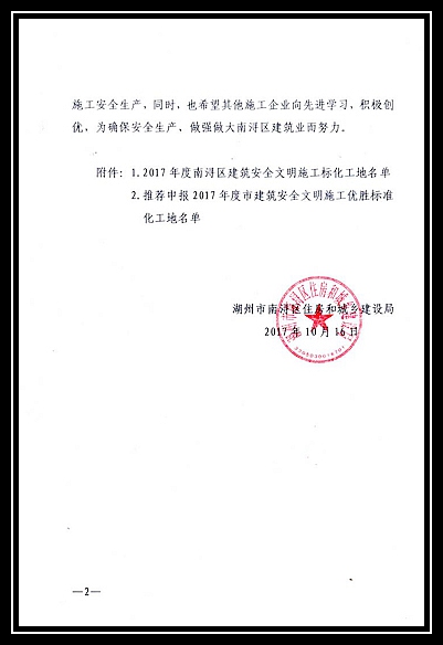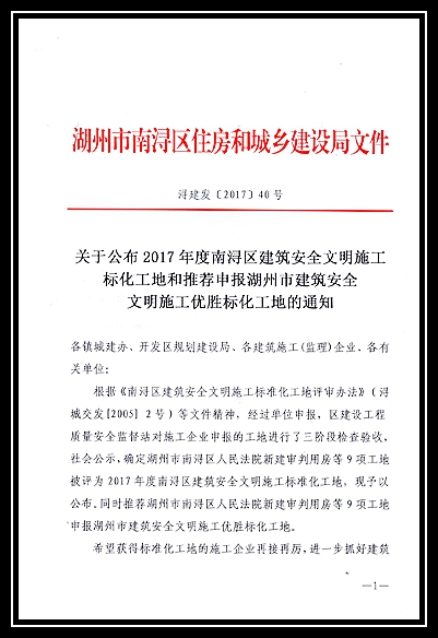 2017年度南潯區(qū)建筑安全文明施工標化工地