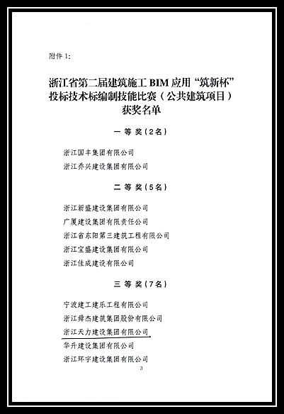 浙江省第二屆建筑施工BIM應(yīng)用“筑新杯”投標(biāo)技術(shù)標(biāo)編制技能比賽(公共建筑、住宅項目)獲獎名單
