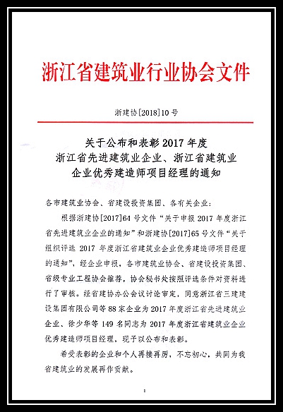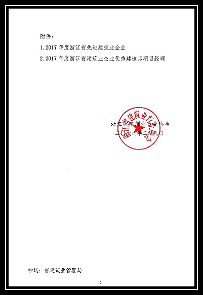 2017年度浙江省先進建筑業企業