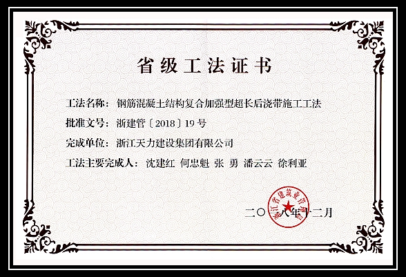2017年度省級鋼筋混凝土結(jié)構(gòu)復(fù)合加強(qiáng)型超長后澆帶施工工法