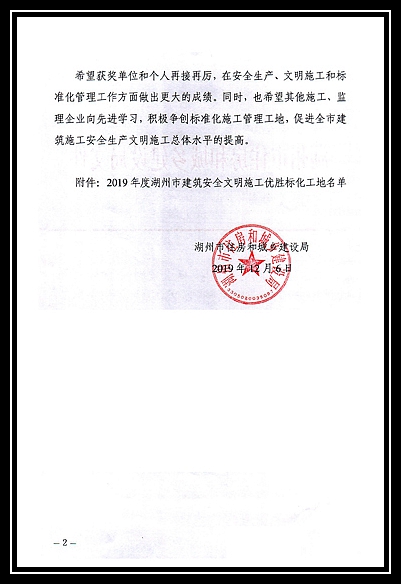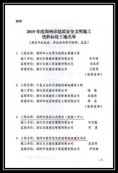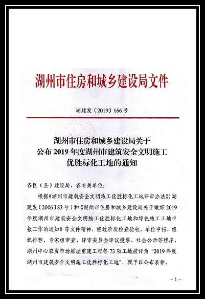 2019年度湖州市建筑安全文明施工優勝標化工地