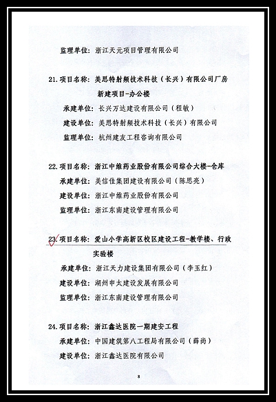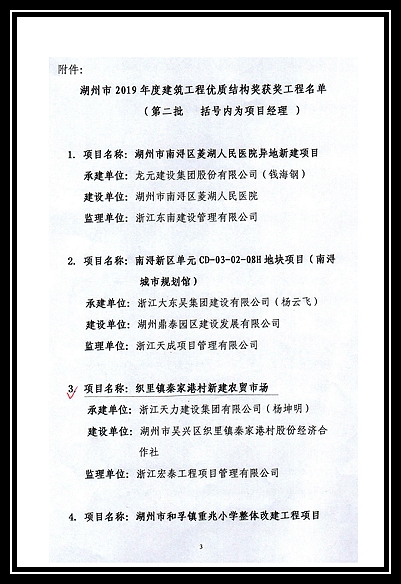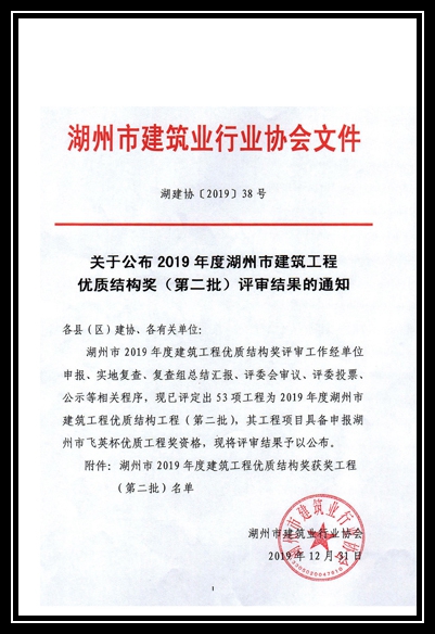 2019年度湖州市建筑工程優質結構獎(第二批)