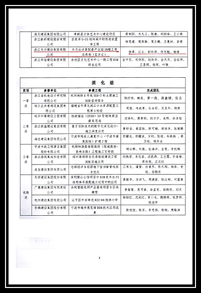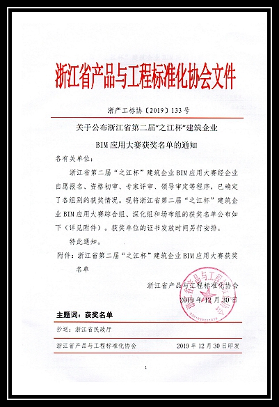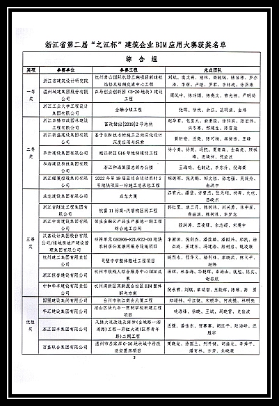 浙江省第二屆“之江杯”建筑企業(yè)BIM應(yīng)用大賽獲獎