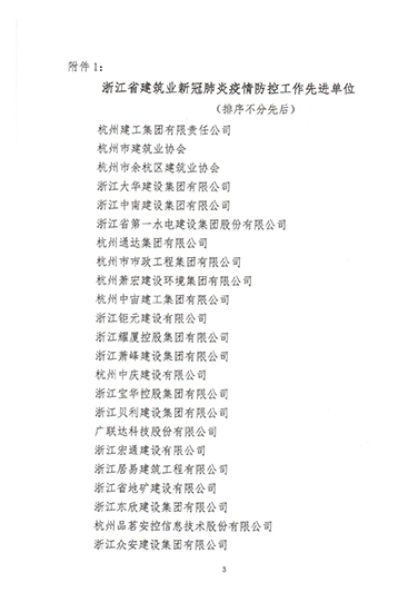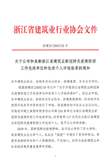 浙江省建筑業(yè)新冠肺炎疫情防控工作先進(jìn)單位和先進(jìn)個(gè)人