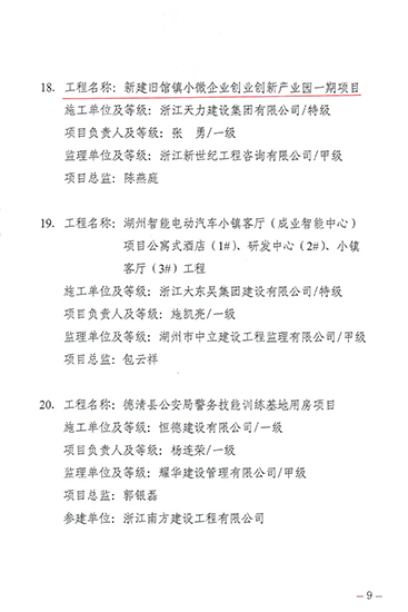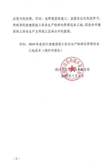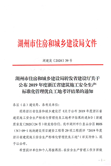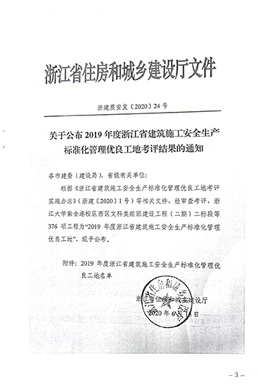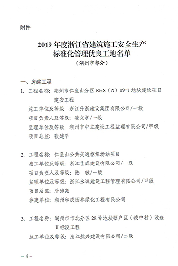 2019年度浙江省建筑施工安全生產標準化管理優良工地(省標化)
