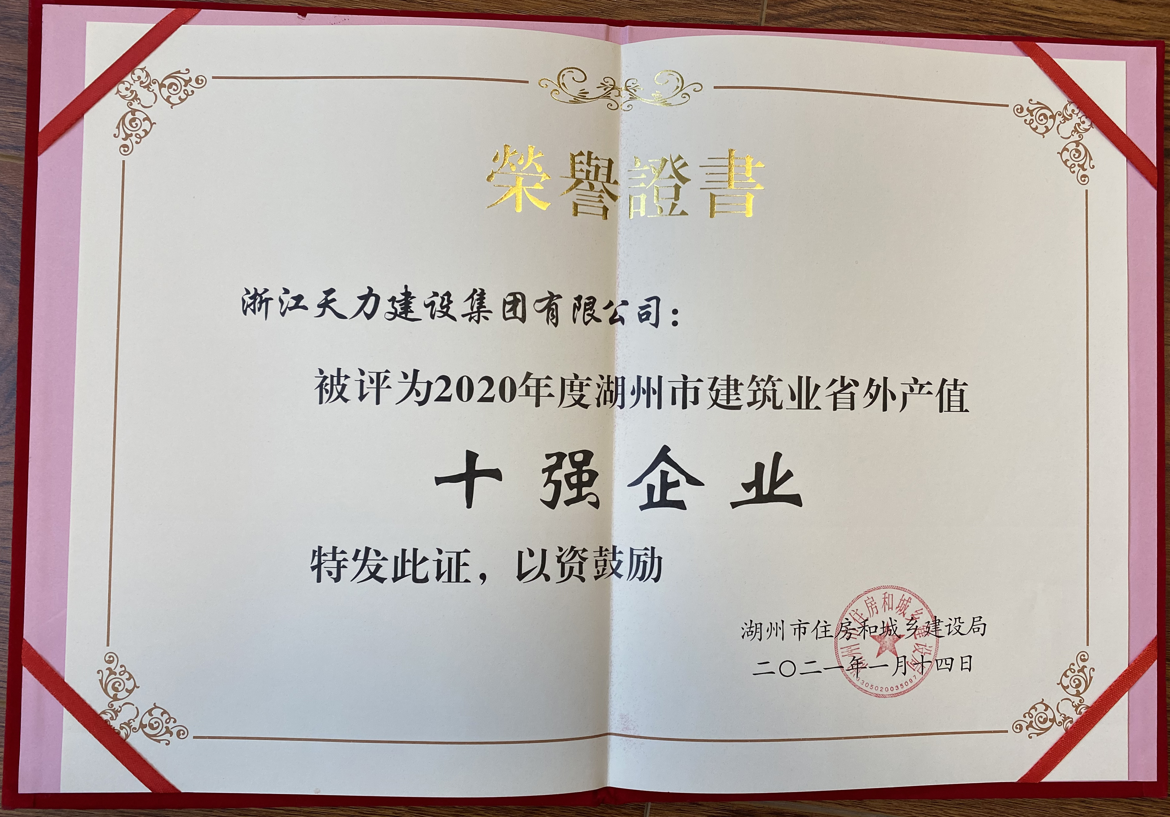 2020年度湖州市建筑業省外產值十強企業