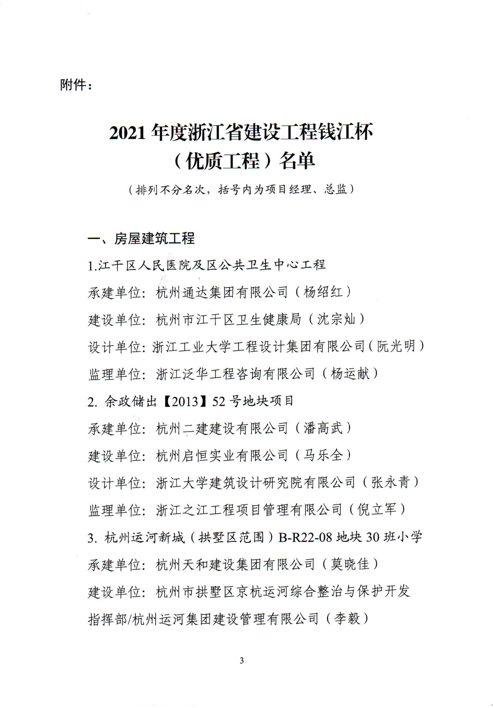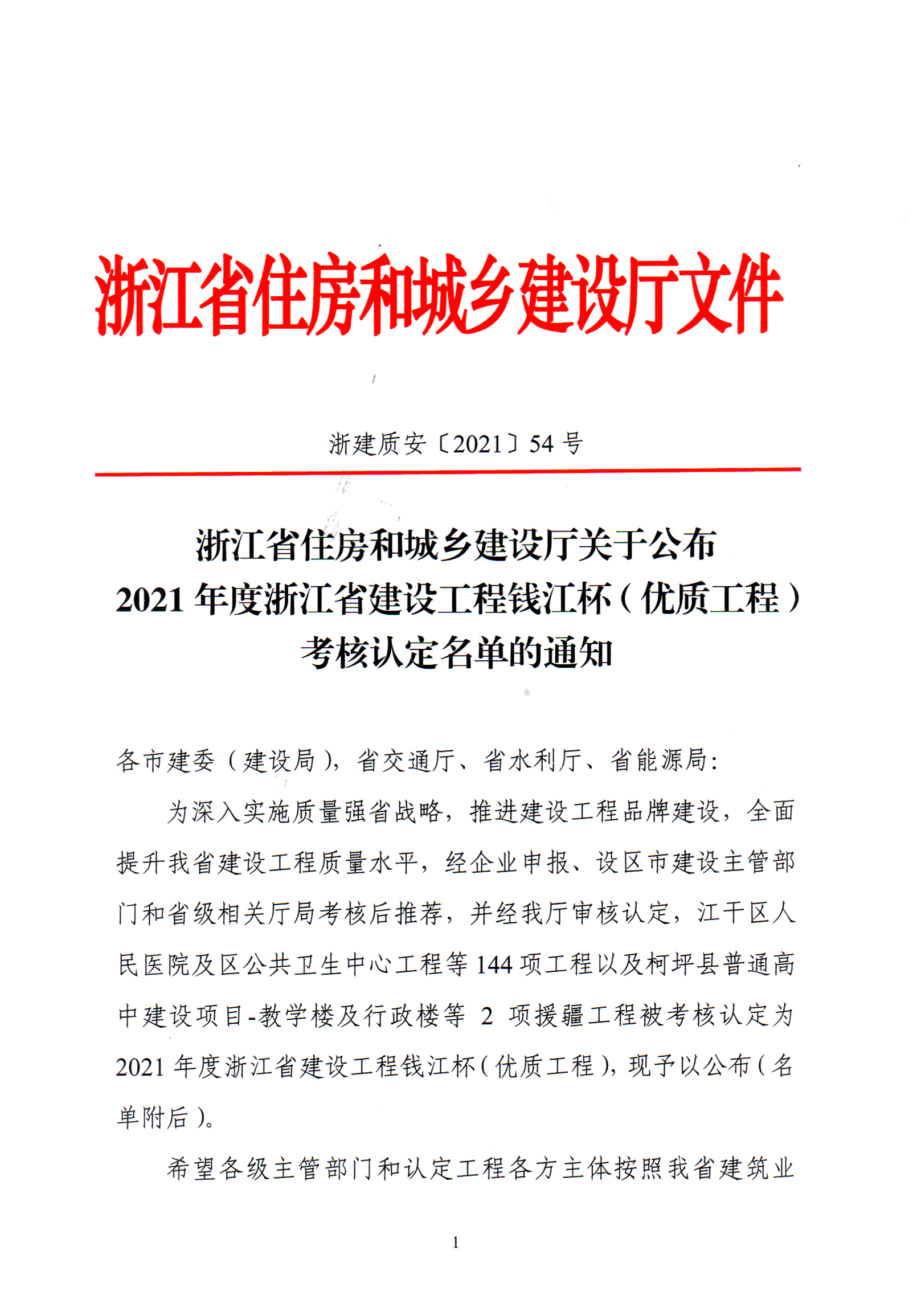2021年度浙江省建設(shè)工程錢江杯(優(yōu)質(zhì)工程)