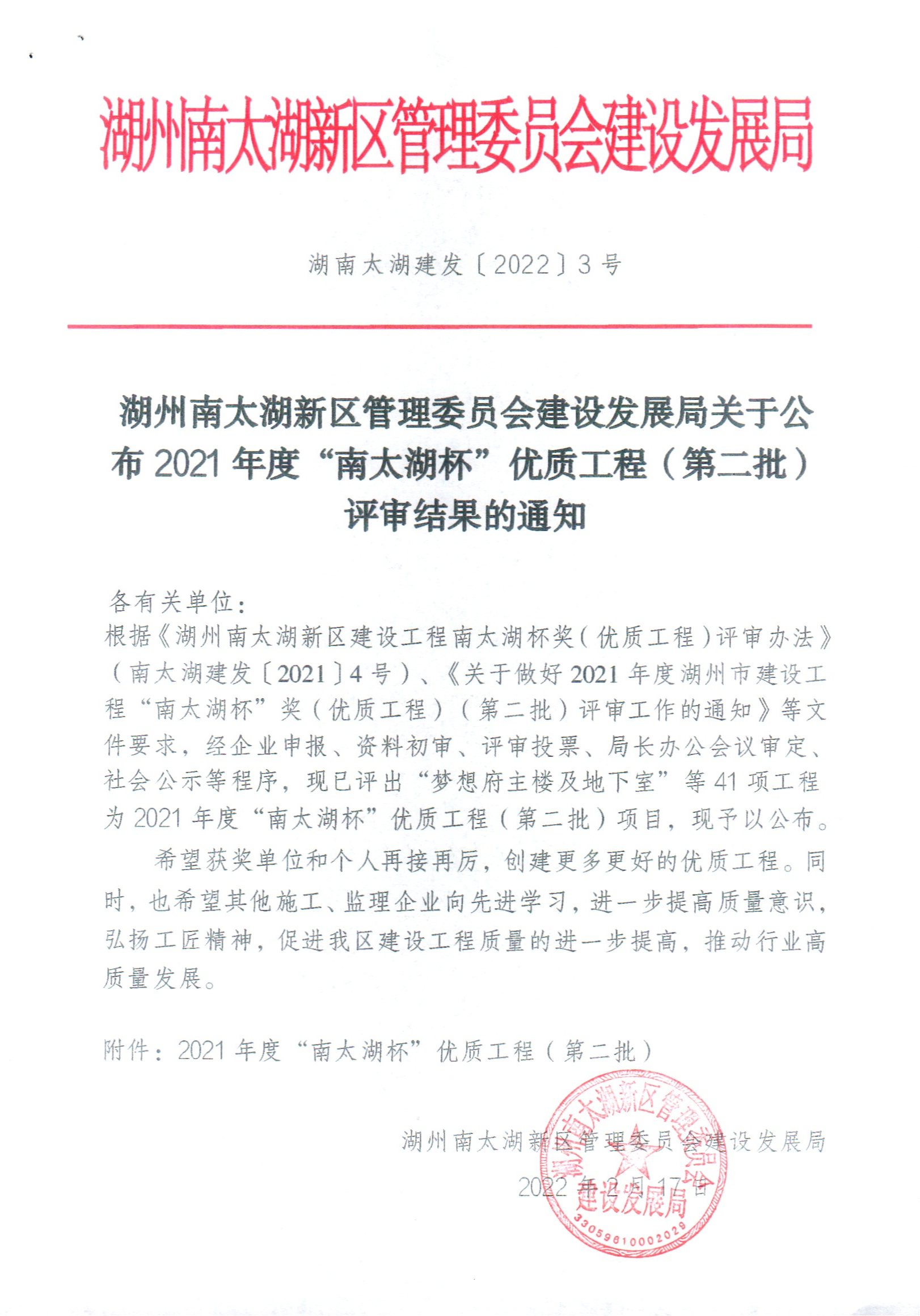 2021年度“南太湖杯”優質工程(第二批)