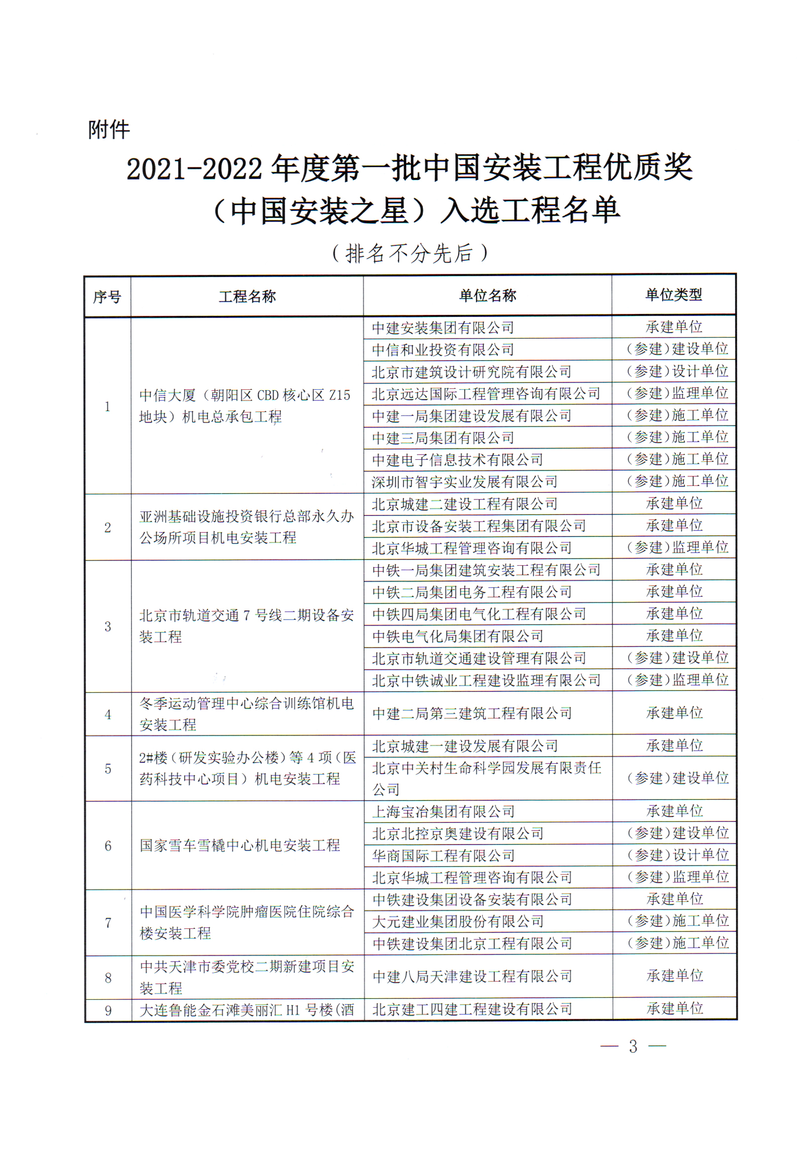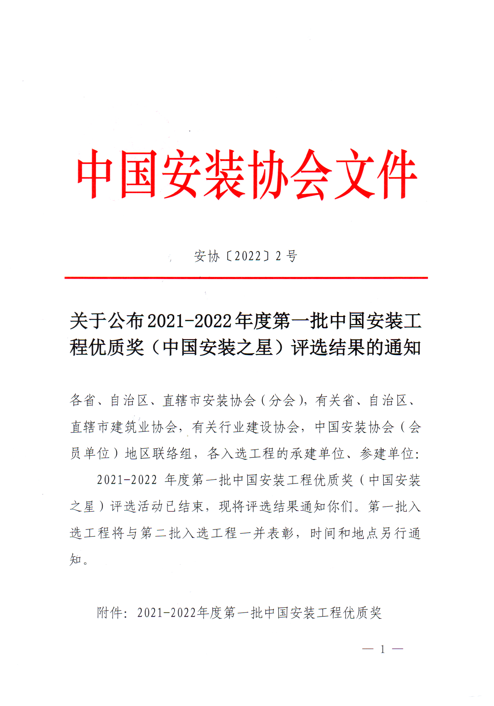 2021-2022年度第一批中國安裝工程優質獎(中國安裝之星)