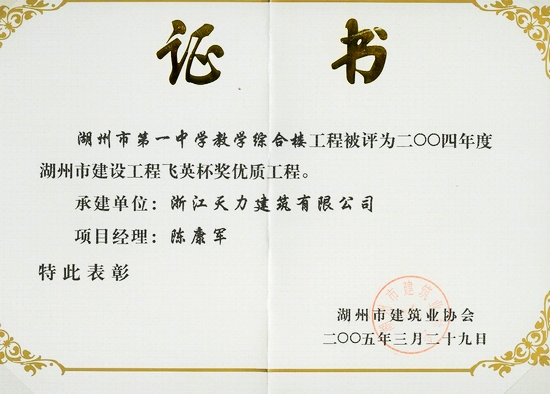 湖州市第一中學綜合樓2004年度市建設工程飛英杯優質工程