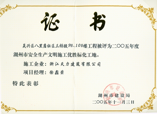 吳興區(qū)八里店社區(qū)三標段9#、10#樓2005年度湖州市優(yōu)勝標化
