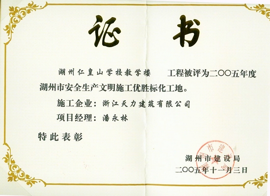 湖州仁皇山學(xué)校教學(xué)樓2005年度湖州市優(yōu)勝標(biāo)化