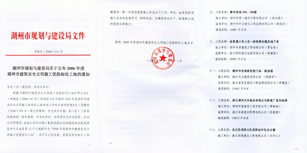 2006年湖州建筑安全文明優(yōu)勝標(biāo)化