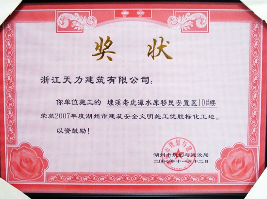 埭溪老虎潭水庫移民安置區(qū)10#樓2007年度湖州市優(yōu)勝標(biāo)化