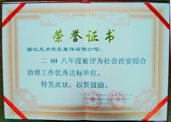 2008年度社會治安綜合治理工作優(yōu)秀達(dá)標(biāo)單位