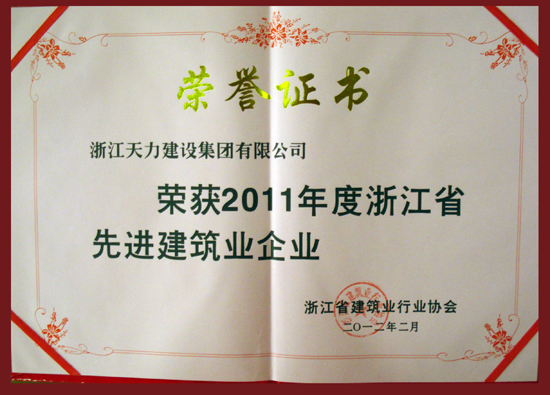 公司榮獲2011年度浙江省建筑業先進企業