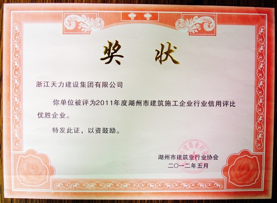 2011年度湖州市建筑施工企業行業信用評比優勝企業