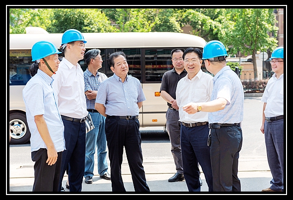 6月14日上午,湖州市政協(xié)主席楊建新等市政府相關(guān)領(lǐng)導(dǎo)在市旅游集團(tuán)董事長李曉良、本集團(tuán)董事局主席楊虎麟等各個參建單位領(lǐng)導(dǎo)的陪同下,來到旅游大廈項目進(jìn)行考察調(diào)研。