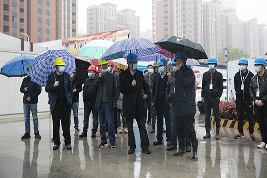 3月30日下午,湖州市住房和城鄉建設局黨委書記、局長戴健,黨委委員、副局長楊治一行領導蒞臨由我司承建的市北32號地塊視察復工復產安全生產情況,并開展了“五色工地”的調研。房總集團董事長費子明陪同參加,集團公司董事局主席楊虎麟、副總裁印培榮等領導陪同考察。