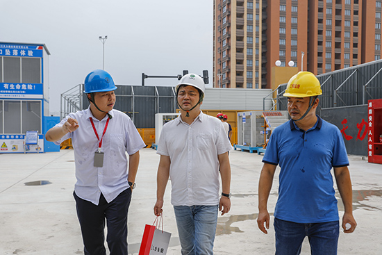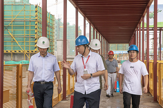 6月28日下午,為進一步推進“五色工地”示范工地引領和創建,提升行業管理能力和項目管理水平,市建設局組織開展了全市建筑施工“樹標桿,學標桿”、“五色工地”觀摩活動。此次活動由副局長龔辛陶帶隊,蒞臨由我司承建的標桿工地市北32號地塊參觀考察,集團公司總裁楊勇陪同參觀,直觀地展示優秀先進的管理經驗,以此助推推進“五色工地”創建,進一步提升企業安全管理水平。