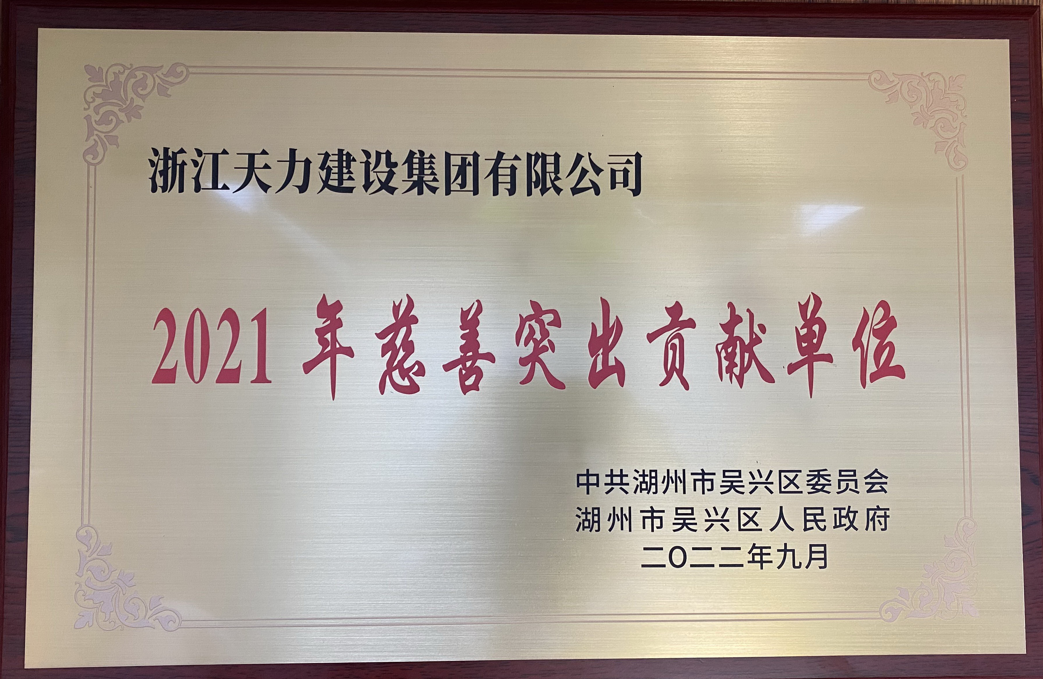 9月8日下午,吳興區(qū)“慈善一日捐”活動動員大會隆重舉行,區(qū)委書記趙如浪代表區(qū)四套班子對積極參與慈善事業(yè)的企業(yè)、單位和先進(jìn)個人進(jìn)行表彰,天力集團(tuán)被授予“2021年度慈善突出貢獻(xiàn)單位”稱號,并在活動中捐款50萬元支持公益慈善活動。