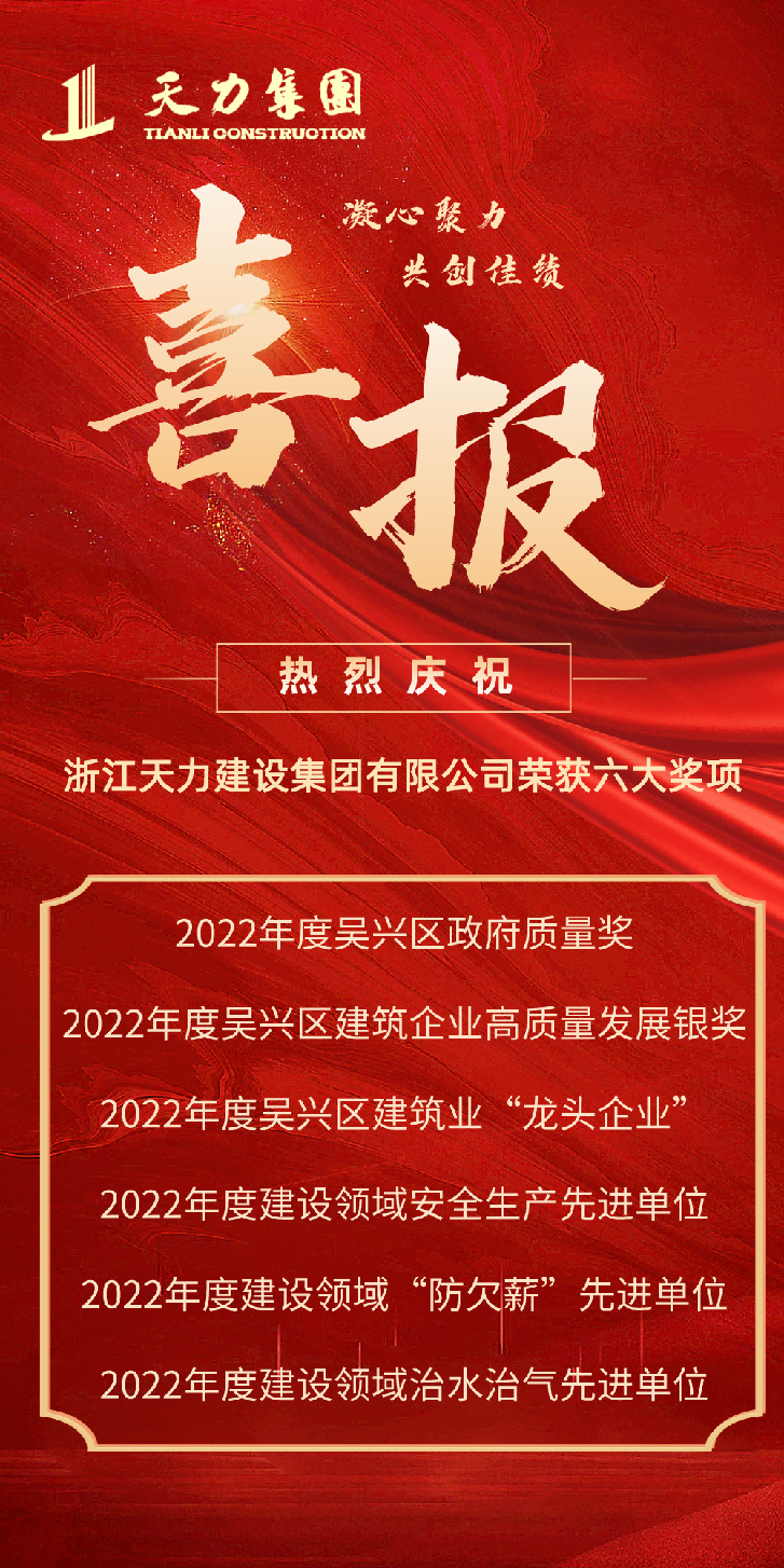 2023年1月29日,吳興區召開了實干爭先經濟發展大會,營造全力拼經濟、聚力搶發展的良好氛圍,奮力推動吳興經濟社會高質量發展。浙江天力建設集團有限公司在2022年取得成績和貢獻也在大會上受到區委區政府的高度肯定,榮獲多項榮譽。