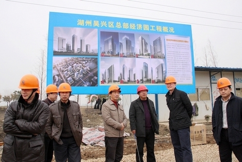 2011年2月19日下午13:30,吳興區(qū)區(qū)長(zhǎng)蔡旭昶一行來湖州市東部新區(qū)總部經(jīng)濟(jì)大樓視察工作,領(lǐng)導(dǎo)班子向蔡區(qū)長(zhǎng)詳細(xì)匯報(bào)了該工程的具體情況,我公司競(jìng)得的3H地塊已完成打樁。